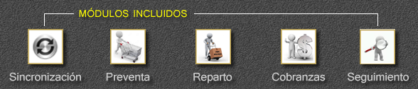 Módulos: Sincronización - Preventa - Reparto - Cobranzas - Seguimiento Satelital